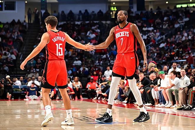 休斯敦火箭队老将凯文·杜兰特近日接受了记者采访。在采访中,他还与球队新晋后场球星里德·谢泼德讨论了这一情况。杜兰特似乎对谢泼德季前赛的表现很满意,他也对谢泼德的未来充满信心。杜兰特表示:我喜欢里德谢泼德季前赛的表现。尤其是最后一场比赛,里德·谢泼德展现出了自己各方面的能力,给大家留下了深刻的印象。他在进攻和防守上都非常具有侵略性,给对手带来了很多麻烦。杜兰特继续说道: 里德·谢泼德的表现为整场比赛定下了基调。我们用了二队,甚至三队的一些球员,击败了几乎全阵容出战的亚特兰大老鹰队。这是一项了不起的成就。为了实现这一目标,他们是一支非常优秀的团队。谢泼德也在比赛中展示了自己的领导能力,他对比赛的影响力和贡献非常大。所有人都清楚。带领这么多年轻球员有这样的表现,当然不是一件容易的事。在此前的NBA季前赛中,谢泼德一共出场4次,场均出场23.8分钟。场均贡献15分4篮板3助攻1.5抢断1.5盖帽。他还有1.3次失误和2.8次犯规。他的投篮命中率为51.2%,三分命中率为40.7%,罚球命中率为83.3%。在季前赛第四场对阵老鹰的比赛中,谢泼德在29分14秒的上场时间内22投12中,三分线外13投5中。他拿下全场最高的29分,外加6个篮板、6次助攻、4次抢断和3次盖帽。他还有2次失误,正负值+11。虽然谢泼德在之前三场季前赛中的表现并不出色,但在季前赛第四场对阵老鹰队的比赛中,他也展现了自己出色的个人能力。他在攻防两端都发挥着非常重要的作用,做出了巨大的贡献为了团队的成功。谢泼德上赛季的表现肯定并不完美,但由于弗雷德·范弗利特在赛季初受伤,新赛季谢泼德必须承担更多的责任。谢泼德在季前赛最后一场比赛中证明了自己的勇气,但毕竟这是一场季前赛。接下来我们也可以看看,在NBA常规赛开始后,获得更多上场时间和表现机会的谢泼德能有怎样的表现。他能否像杜兰特所说的那样在球队中扮演更重要的角色呢?